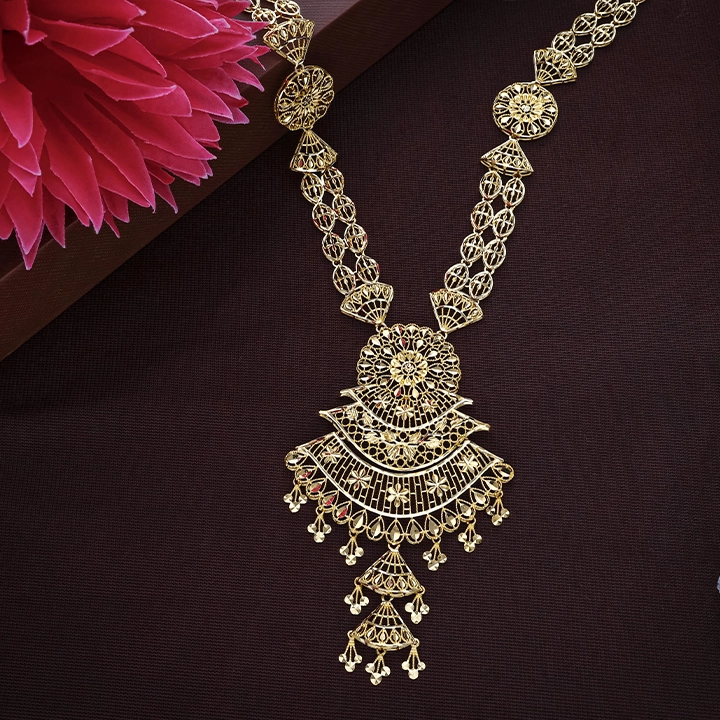 22K Circle Floral Gold Long Necklace – NKSL6629 S364