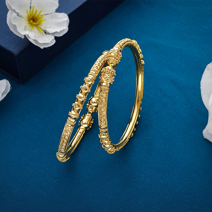 22K Filigree Floral Gold Bangles Pair-BALA1365 S385