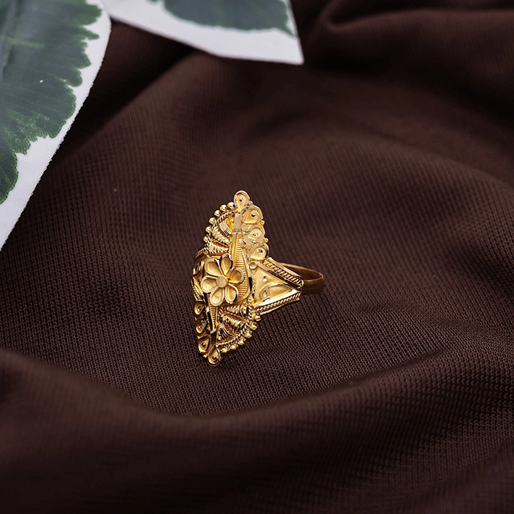 Bloom with elegance in this 22K Floral Filigree Gold Ring from Arundhati Jewellers. Featuring delicate petal motifs and intricate detailing in a marquise shape, it's perfect for daily wear, festivals, and traditional sophistication.