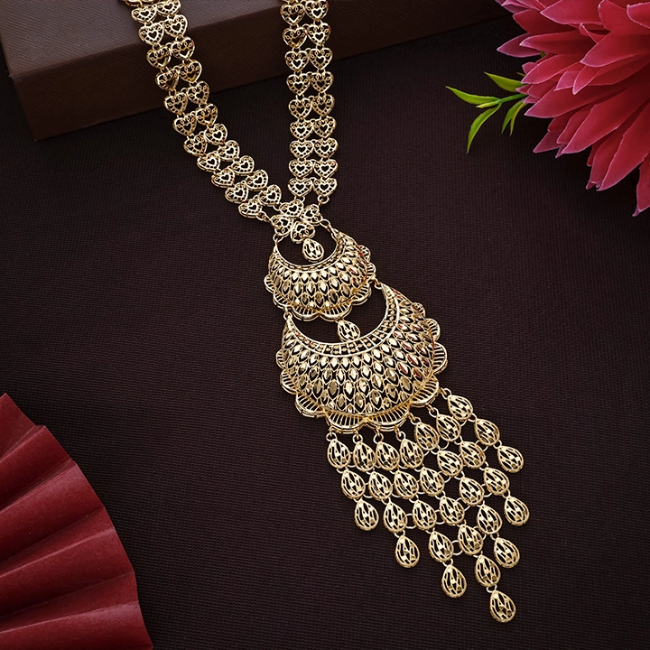 22K Lotus Floral Gold Long Necklace – NKSL6627 S364