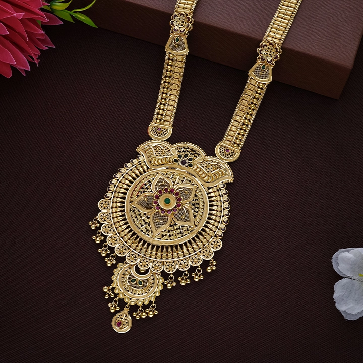 22K Wave Filigree Gold Long Necklace – NKSL6623 SU3369