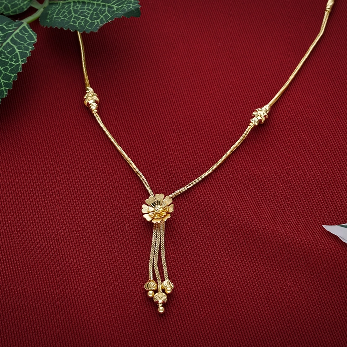 Elevate elegance with a Gold Floral Tassel Pendant from Arundhati Jewellers. Showcasing a delicate floral centerpiece with graceful dangling tassels, perfect for adding charm to everyday or festive looks.