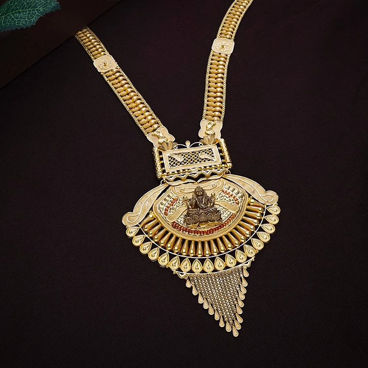 Discover elegant Long Gold Necklace Designs crafted with intricate antique artistry and rich traditional detailing. This Bridal Long Necklace is a timeless Gold Necklace for Women, perfect for weddings and festive occasions. Shop this exquisite Gold Long Necklace Online and explore premium Antique Long Necklace Designs today.
