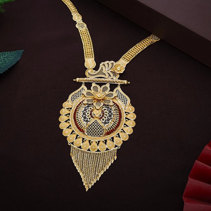 Discover elegant Long Gold Necklace Designs crafted with intricate antique artistry and rich traditional detailing. This Bridal Long Necklace is a timeless Gold Necklace for Women, perfect for weddings and festive occasions. Shop this exquisite Gold Long Necklace Online and explore premium Antique Long Necklace Designs today.