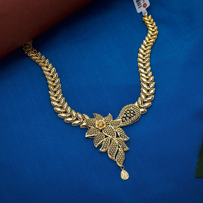 Grand Floral Short Gold Necklace-NKSL6587 S364
