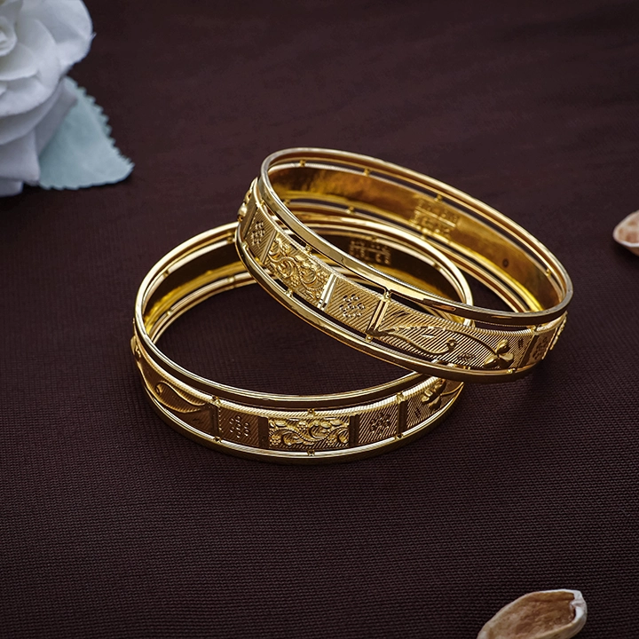 Paisley Motif 22K Gold Bangles Pair - BNG22705 S298