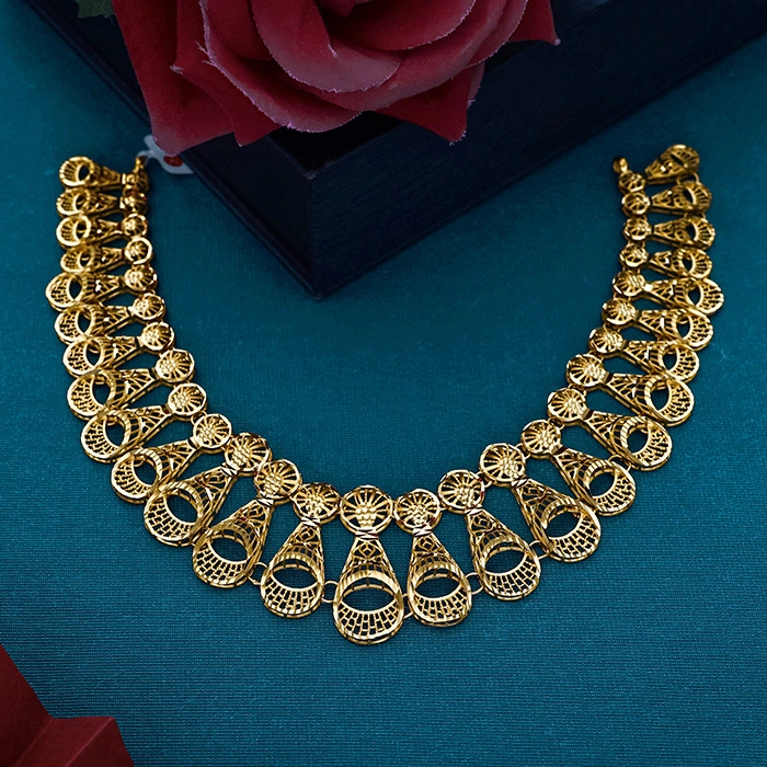 Regal Filigree Drop Motif Gold Necklace-NKSL6553 S364