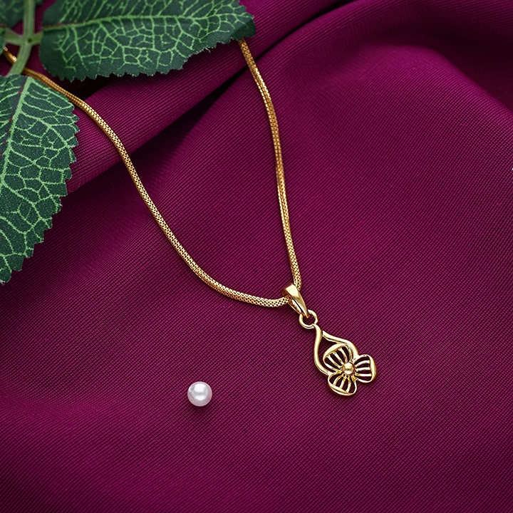Delight your child with Triple Petal 22K Gold Kids Pendant Locket from Arundhati Jewellers. Three delicate flowers in filigree design on fine chain—perfect for daily wear, gifts, or festive occasions.