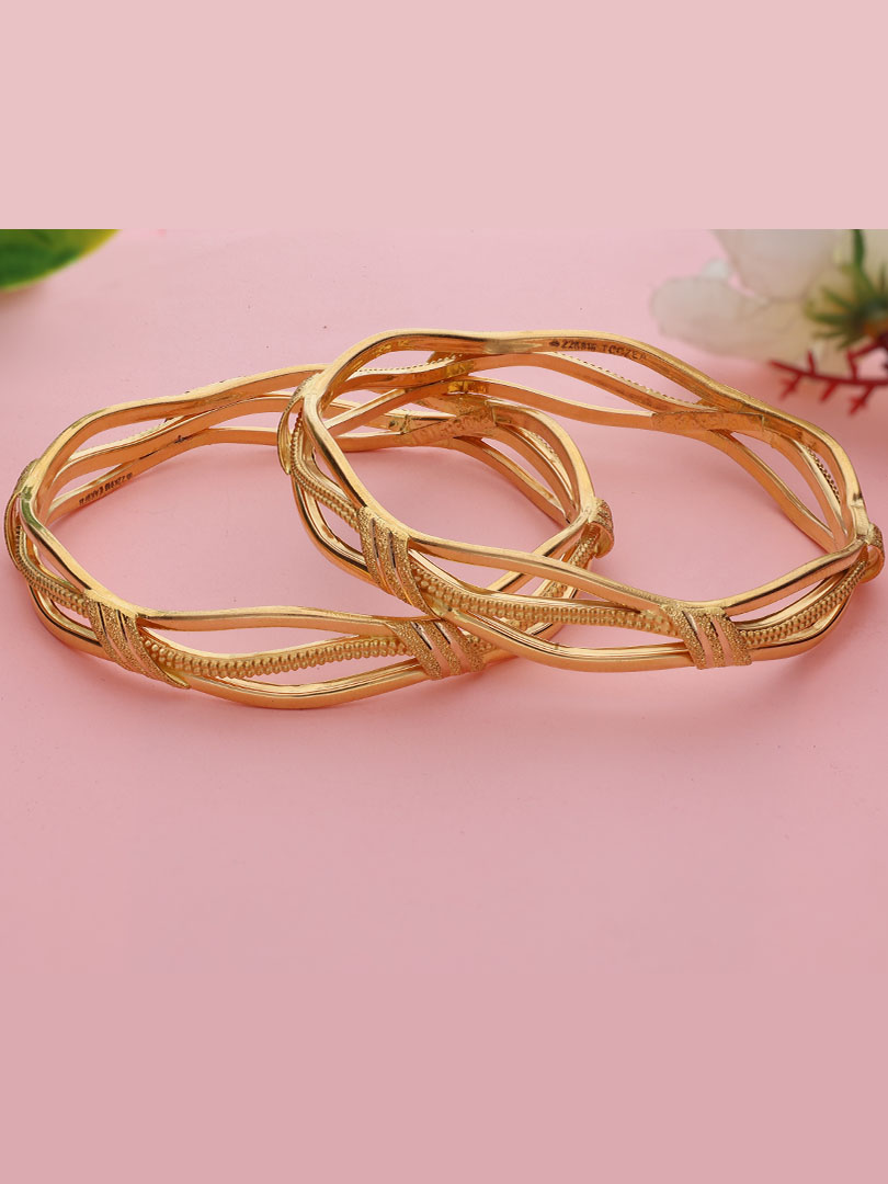 This 22KT HUID 916 Twisted Link Bangles feature a stylish, interwoven design, perfect for daily wear. Their durable yet elegant look adds a subtle, sophisticated touch to your everyday attire.